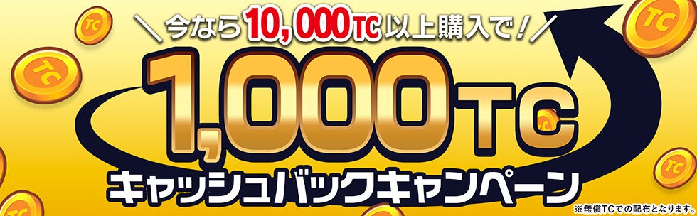 キャンペーン期間中に累計10,000TC以上をご購入いただくと、1,000TCをプレゼント※3いたします。