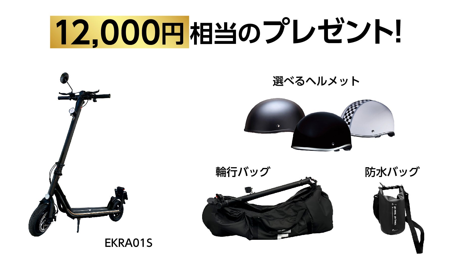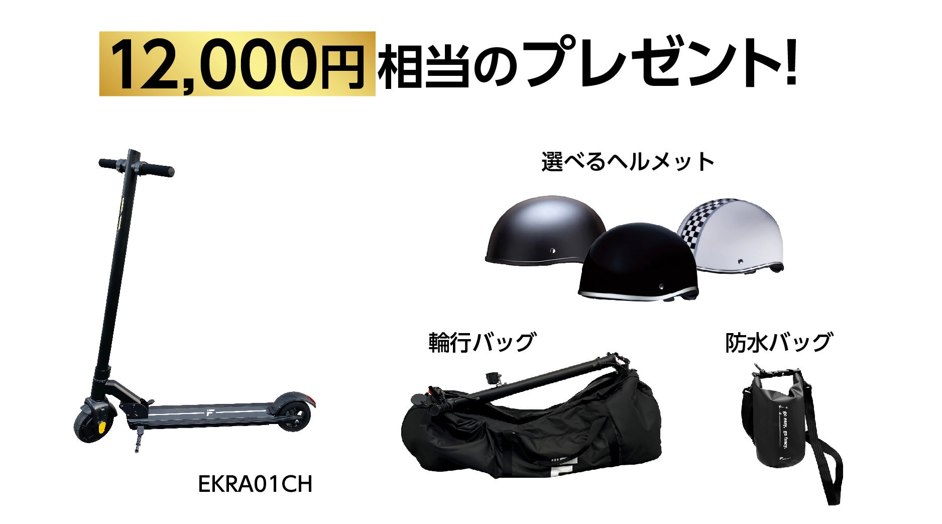 また、電動キックボードをご購入で10,000円相当の輪行バッグとヘルメットさらに2,000円相当のMEISTER.Fオリジナル防水バッグをプレゼントします。