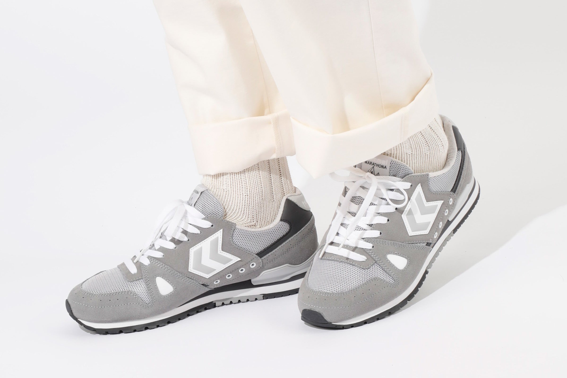 MARATHONA(マラソナ)は、長距離用のランニングシューズとして1983年に誕生。ヨーロッパのランニングシーンでは80年代に人気アイテムとなり、レトロランニングスタイルのトレンドとともにスニーカーで復刻したヒュンメルのアーカイブモデル。