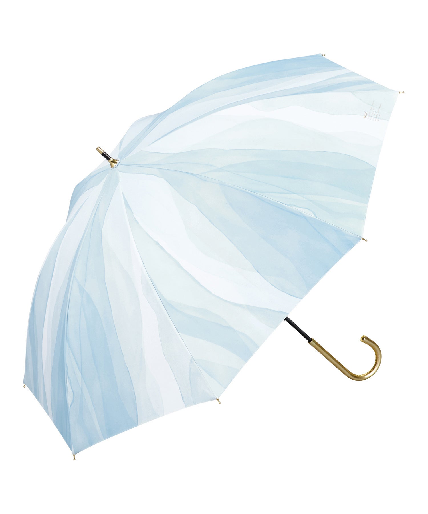 水彩絵の具で描いたような、透明感あふれる夏らしいデザイン。ゴールドの持ち手を組み合わせ、上品なテイストにまとめています