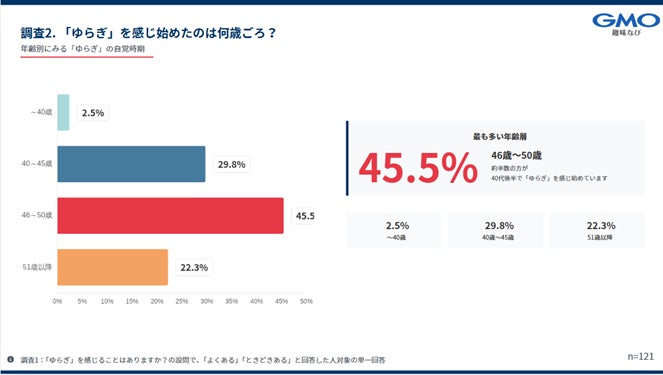 「ゆらぎ」を感じ始めた年齢は 46〜50歳が最多(45.5%)。
