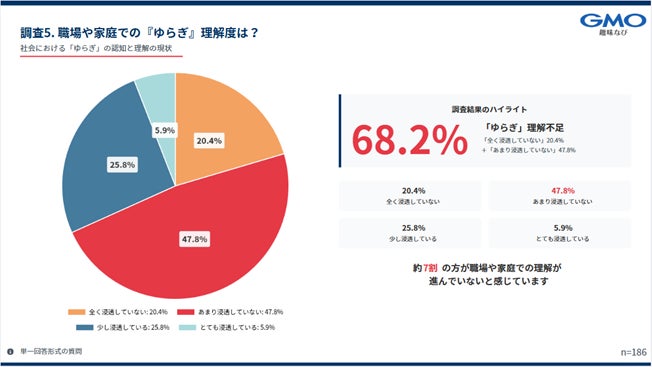 職場や家庭で「ゆらぎ」への理解が浸透していない人は 68.2%。