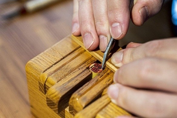 世界にひとつだけの石のハンコを本格的な工程で作ることができます。文字のデザインから彫り上がりまで、印章彫刻職人から丁寧なアドバイスがいただけます。本格練り朱肉付きで、手紙や書画などにお使いいただけます。