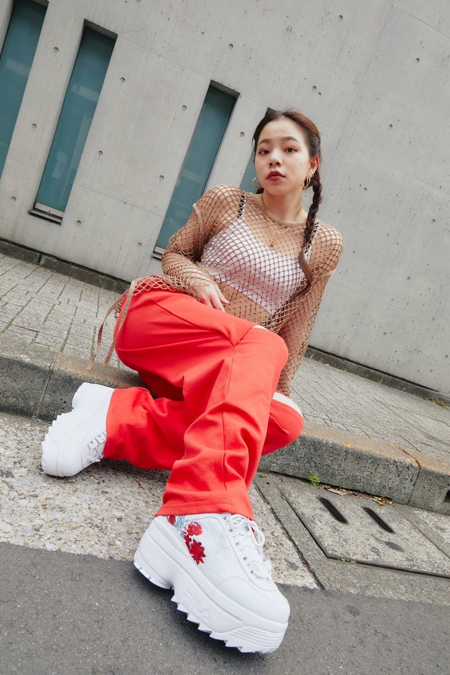 atmos pink×FILA 高級感のあるバラ刺繍の入ったDISRUPTOR Ⅱ WEDGEで登場!