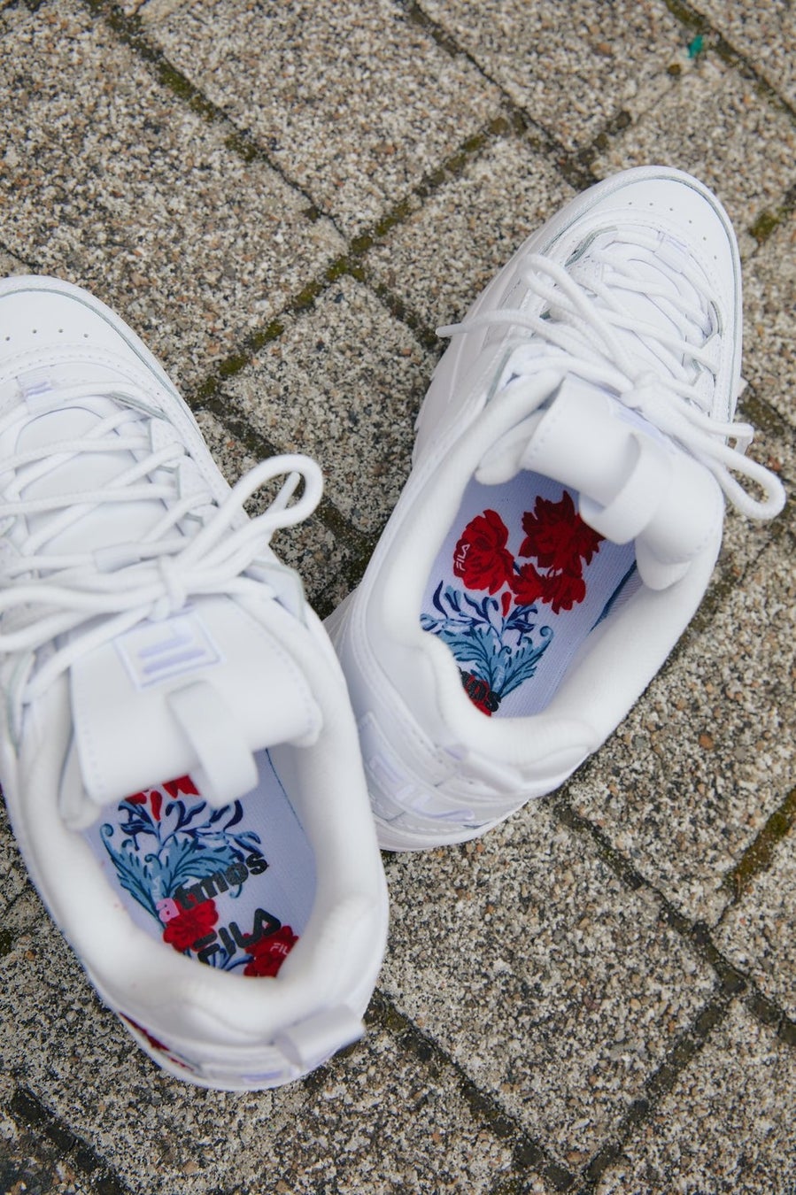 この度、女性の為のスニーカーセレクトショップatmos pinkと世界的スポーツブランドであるFILAとのコラボレーションスニーカー<DISRUPTOR Ⅱ WEDGE FLOWER>を5/28(sat)より発売いたします。