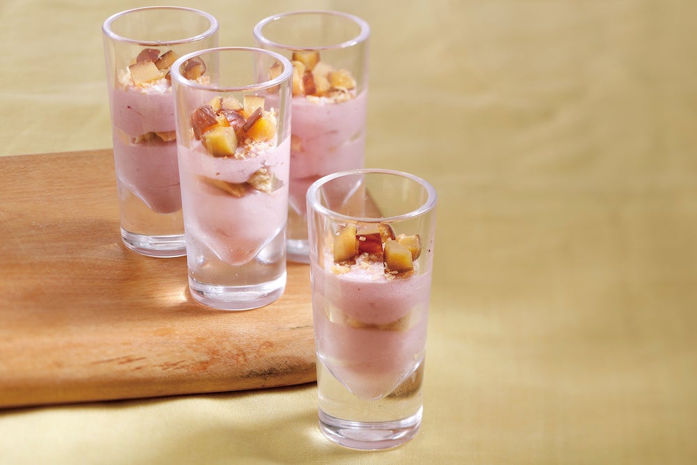 またサラダバーには、ローストした「かぼちゃ」「さつまいも」とフレッシュな「ケール」「りんご」を、酒粕と塩麹を合わせた「酒麹」入りのタルタルで和えた自家製のデリサラダや、ザクザク食感のクランブルを合わせた「さつまいも」のムースに「渋皮栗」をトッピングした秋らしいデザートも新しくラインナップに加わります。