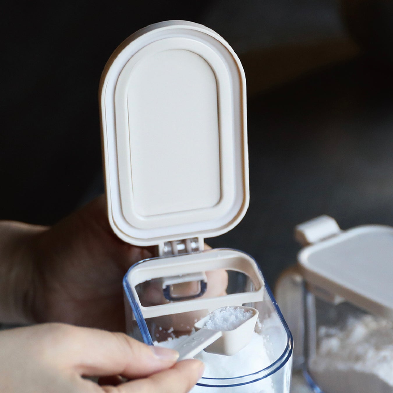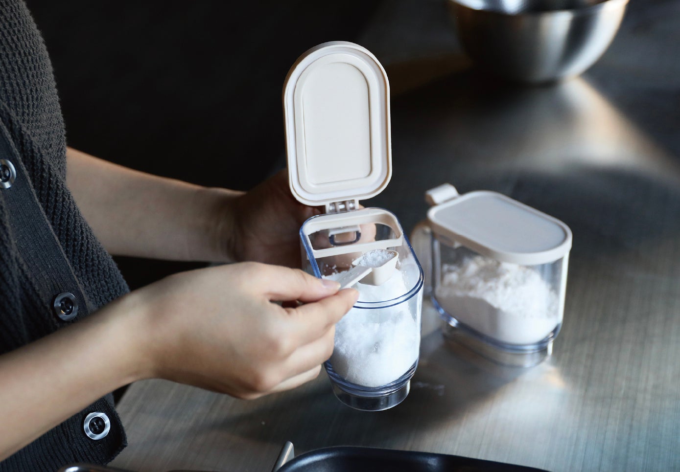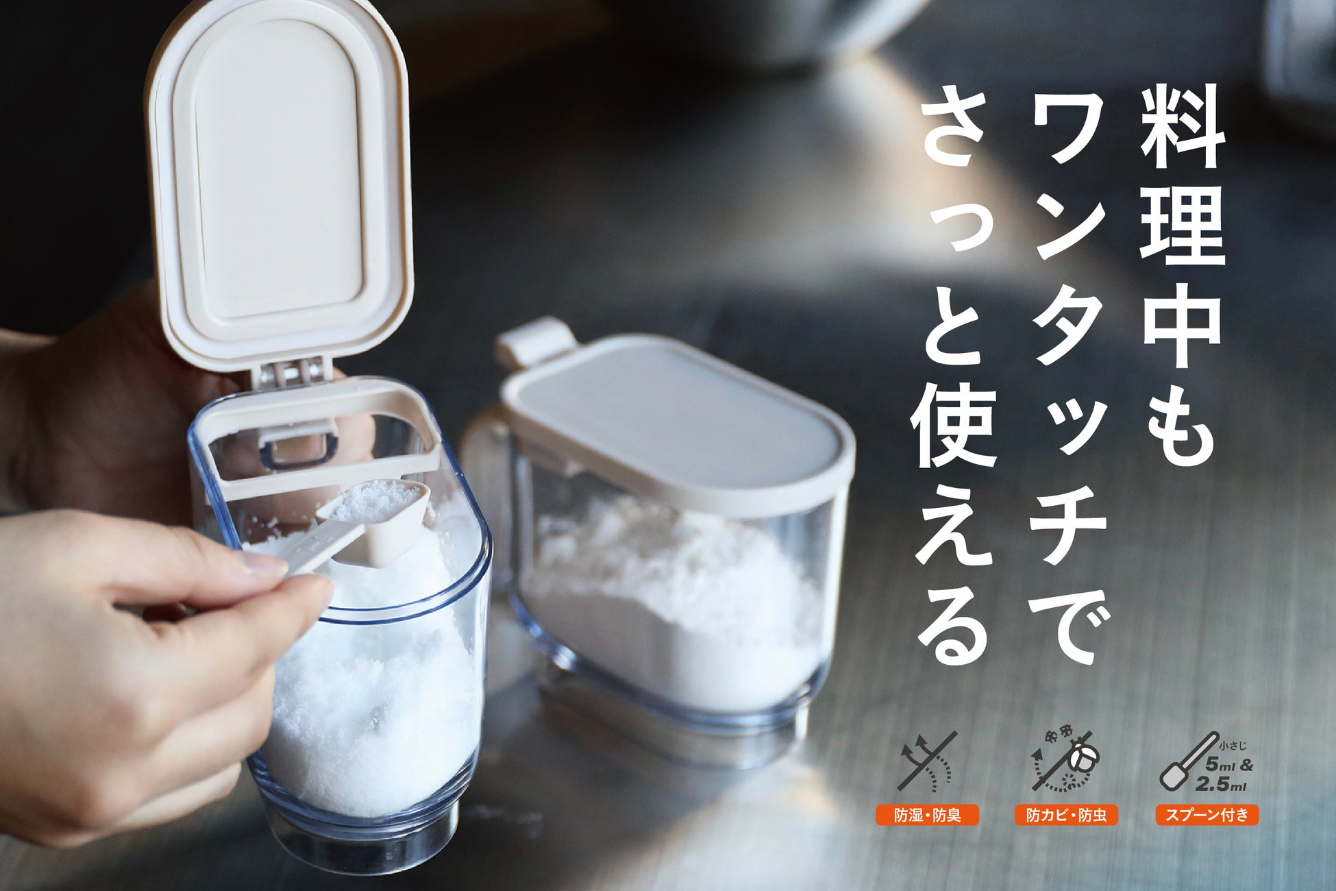 毎日使うからこそより快適なものを選ぶのがおすすめ。スプーンが浮いて、フタが固定される、そんな工夫が嬉しい調味料ポット。