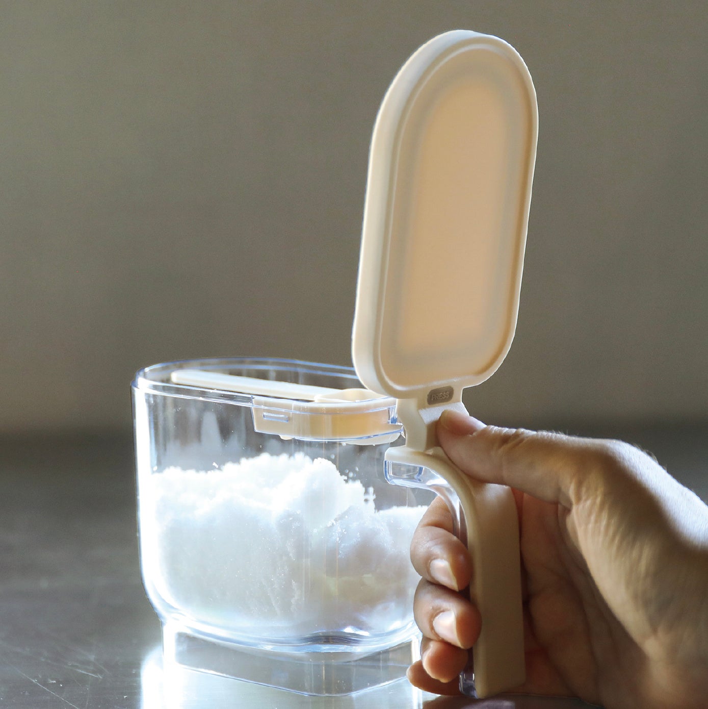 砂糖を何度かすくう場面で、フタが倒れてこず快適