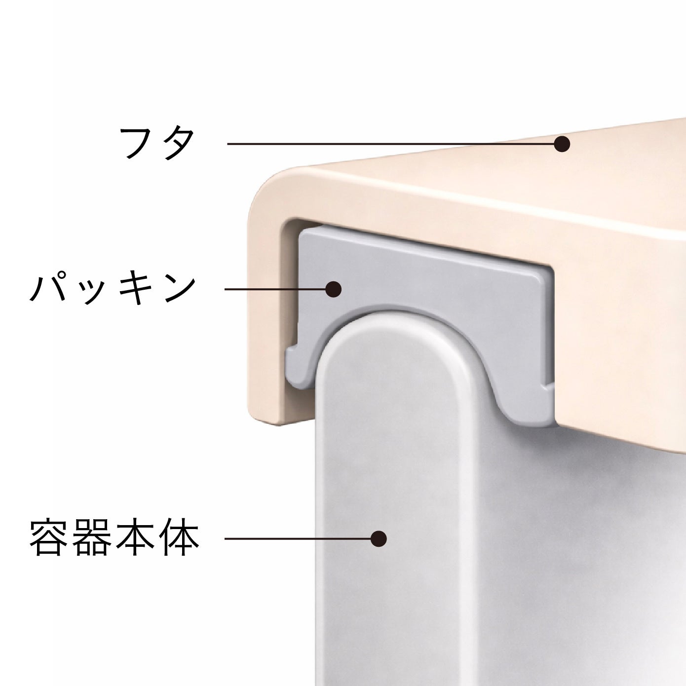 パッキン付きのフタが容器内への空気の侵入を防ぎ、調味料の劣化を防止。