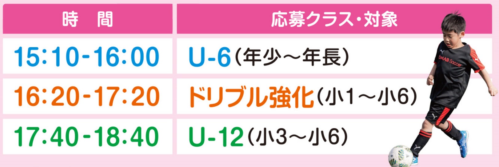 ※各クラス定員に達した場合は抽選とさせていただきます。