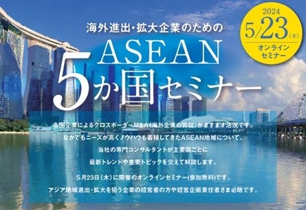 ASEAN地域への進出やさらなる拡大を考える企業のための国別M&A事情解説(シンガポール・マレーシア・インドネシア・ベトナム・タイ)オンラインセミナーを、2024年5月23日(木)に開催することをお知らせいたします。