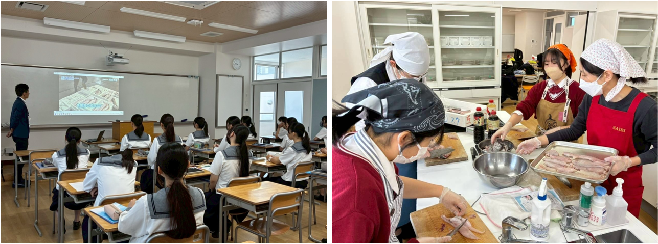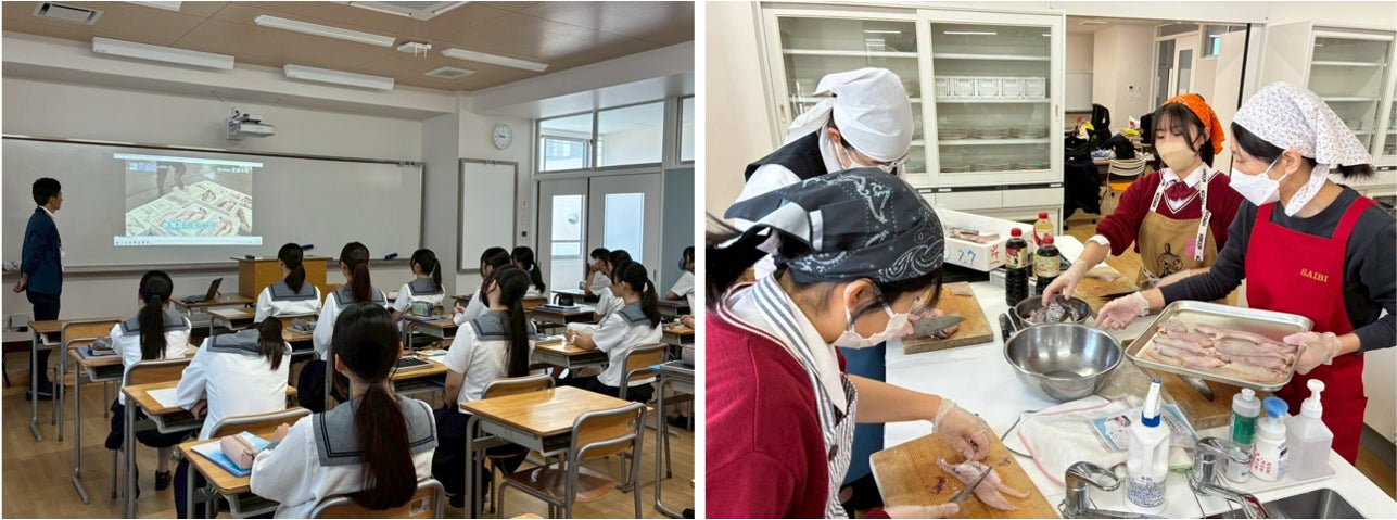 一般社団法人 海と日本プロジェクトinえひめは、2025年7月から2025年10月にかけて、FC今治高等学校里山校の1年生6名、済美高等学校食物科学コース2年生24名と食品メーカー2社がタイアップし、海の環境変化に伴う漁獲量の減少や水産資源の種類の変化など、地元の海の課題について学んだうえで、利用される頻度の少ない水産資源である低利用魚を使った「新たな海飯メニュー」を開発しました。