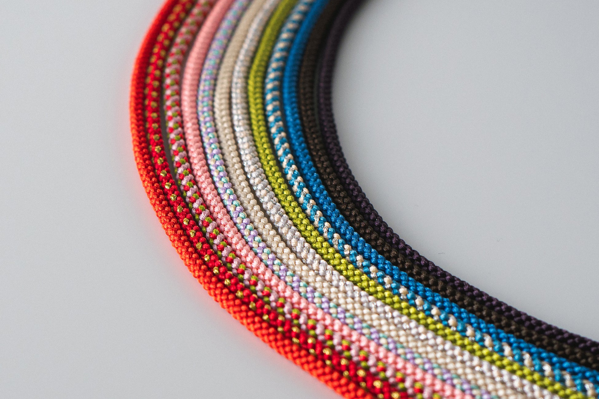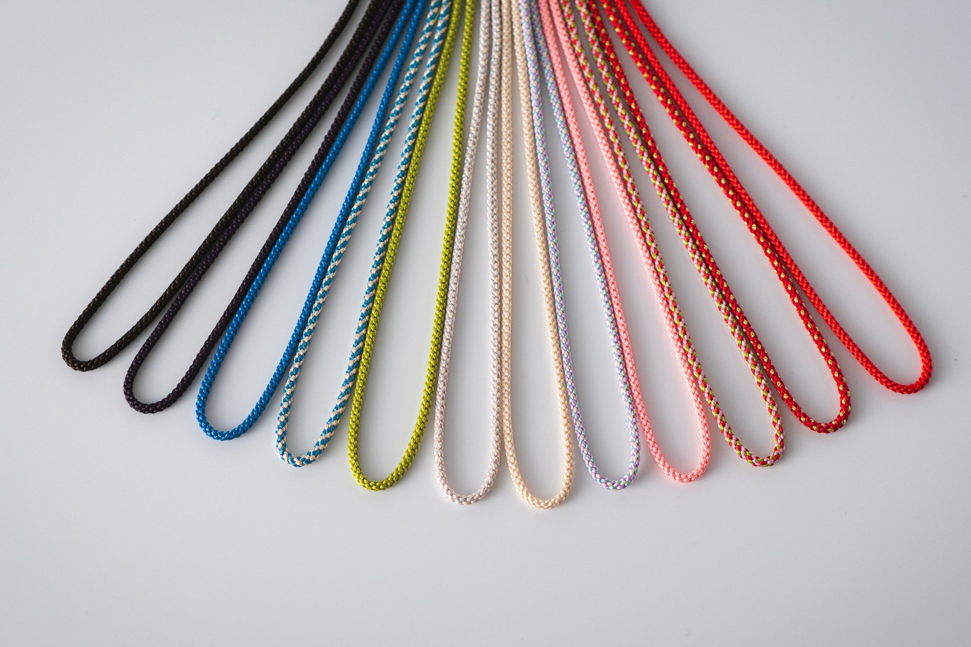 古くから伝わる江戸紐と呼ばれる組み方を採用し、伝統の美しさが伝わる組紐をアクセントにしました。単色7種類、ミックス5種類の計12種類の中から1種類をお選びいただけます。