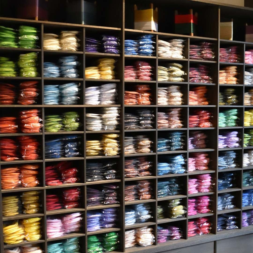 1948年創業の老舗くみひも製造工房。伝統工芸士である梶 操氏を中心に、和装の帯締めや髪飾りを作る工房として発展してきました。