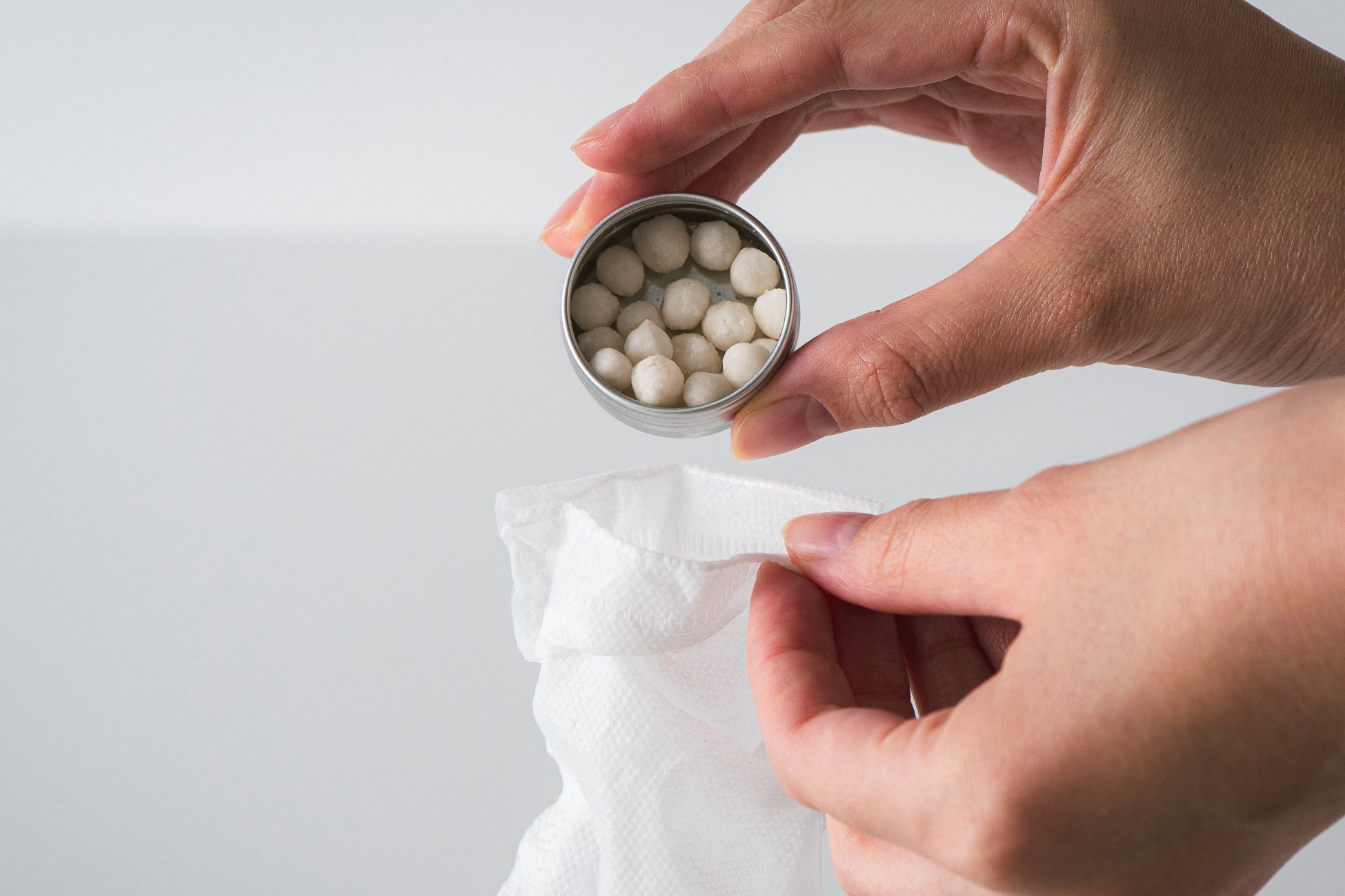 ホワイトムスクをベースにした定番の香りからシーズン限定の香りなど計15種類をラインナップ。その中から好きな香りの芳香ボールを3種類選び、ご自身でブレンドしていきます。