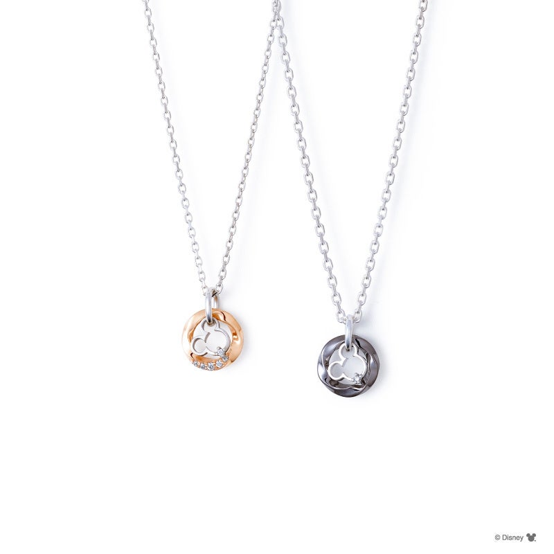 シンプルなフォルムに、ミッキーアイコンやストーンをランダムにあしらった遊び心あるデザイン。