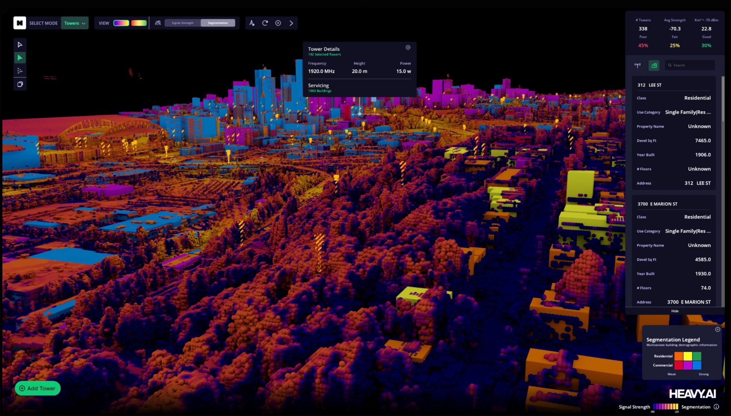株式会社アスク(本社:東京都千代田区)は、弊社が正規代理店を務めます米国HEAVY.AI社が、業界初の無線周波数(RF)デジタルツインソリューションであるHeavyRFを発表したことをお知らせいたします。HeavyRFを利用することで、通信事業者は、NVIDIA Omniverse上で、セルラータワーと基地局の配置を最適化し、最適なカバレッジを得るために、より高速で効率的な都市規模のシミュレーションが可能となります。