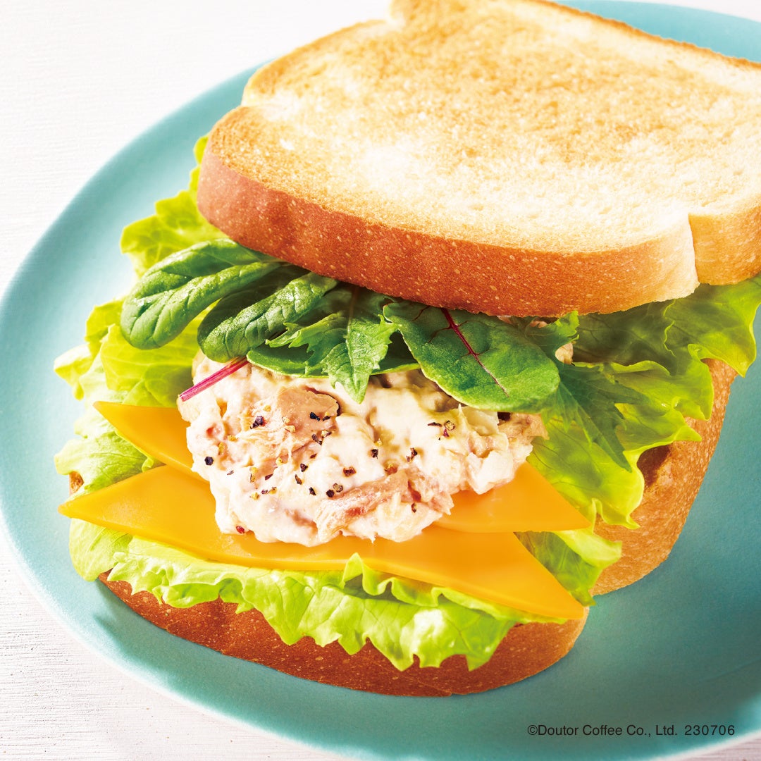 モーニング・セットBがリニューアル。ツナサラダにチェダーチーズのコクを加え、シャキシャキレタスとベビーリーフをサンドした野菜感のあるさっぱりとした朝食サンドです。