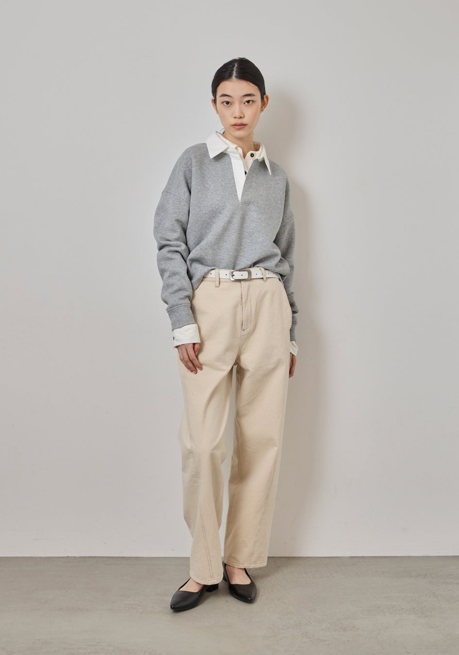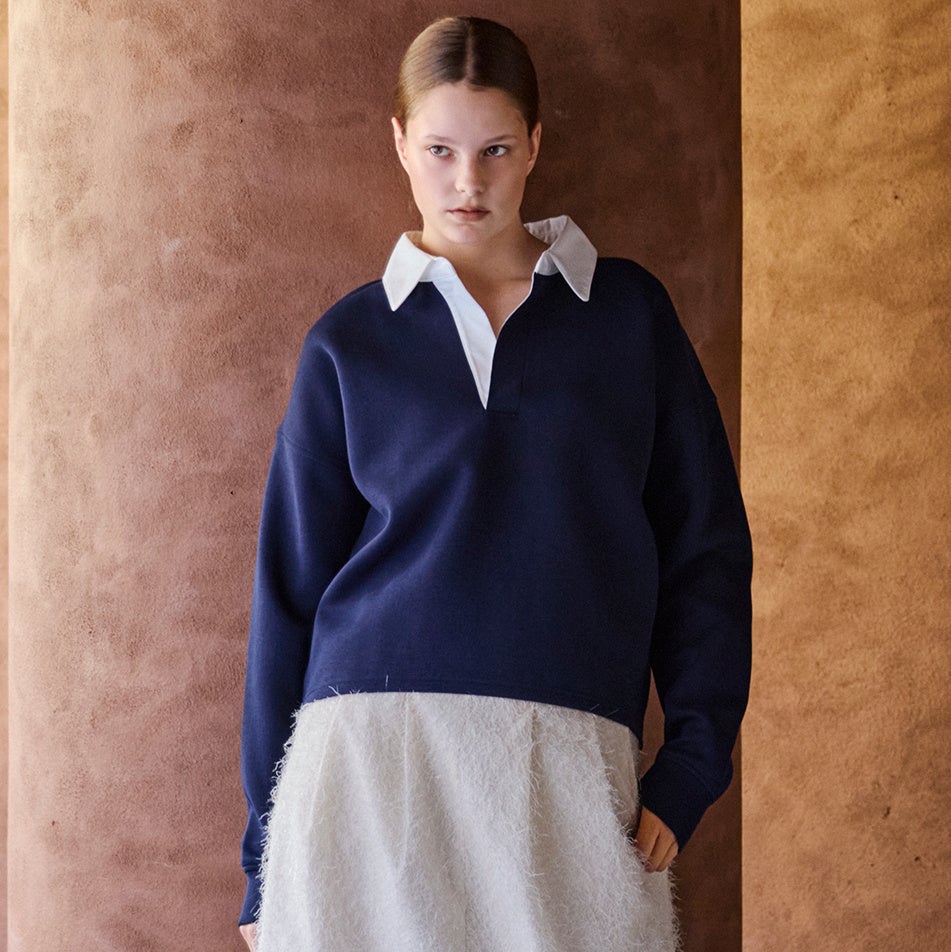 やわらかな配色の襟を添え、クリーンさを引き立てたスキッパースウェット。