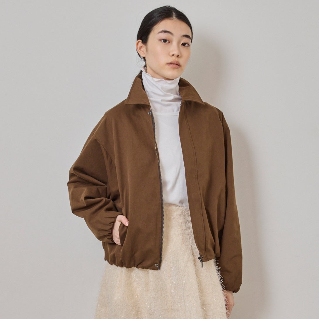 軽さのある素材を、シャープな襟元とクロップド丈で構築したジャケット。ミニマルな表情に、裾のギャザーがほのかな丸みとリズムを添えます。クロップド丈ならではのバランスの良さが、どんな装いにもすっと馴染み、大人のカジュアルに取り入れやすい、頼れる一着です。