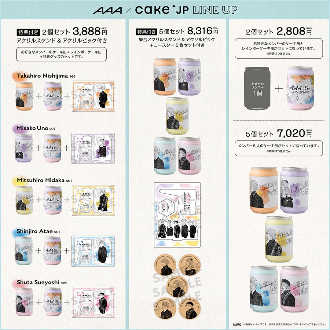 今回、AAAの15周年6大ドームツアーDVD & Blu-ray発売を記念してメンバーをイメージしたケーキ缶がCake.jpとのコラボで実現しました。ファン必見のスペシャルなケーキ缶です。