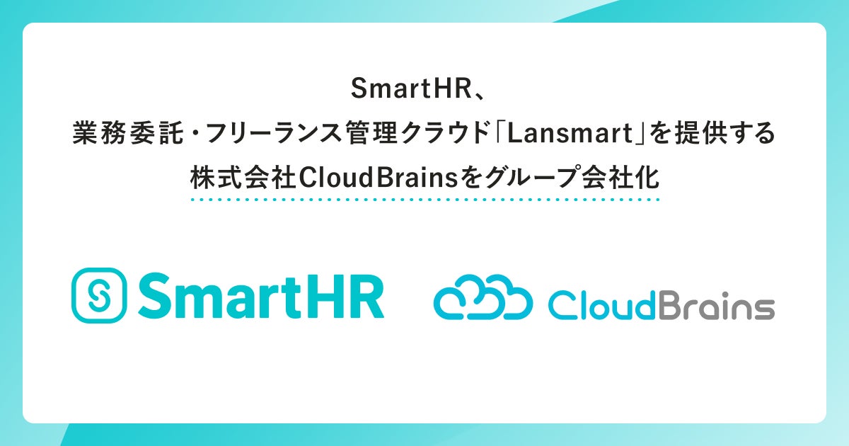株式会社SmartHR(本社:東京都港区、代表取締役CEO:芹澤 雅人)は、2025年4月25日に業務委託・フリーランス管理クラウド「Lansmart」を提供する株式会社CloudBrains(本社:東京都港区、代表取締役:眞壁 雅彦)の発行する全株式を取得し、同社をグループ会社化いたしました。
