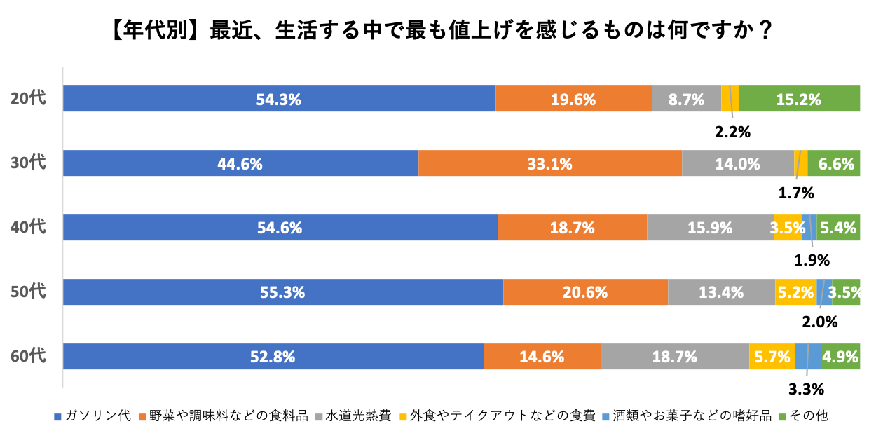 【物価高とその対策に関する調査結果】生活する中で最も値上げを感じるものは「ガソリン代」と半数以上が回答