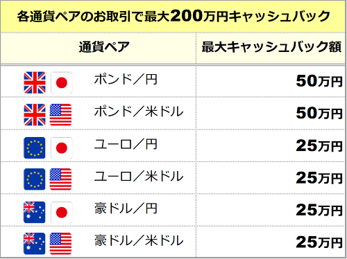 ユーロ・ポンド・豪ドル系6通貨ペアのお取引はキャッシュバック!