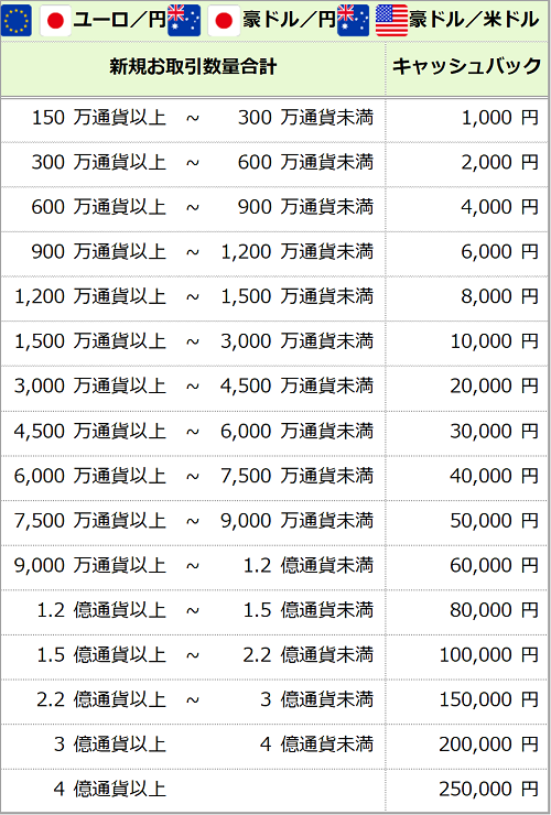 ※キャッシュバック金額は、通貨ペアごとに計算いたします