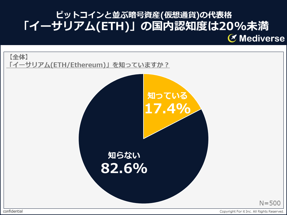そこで今回は、「イーサリアム(ETH/Ethereum)」について、全国20歳以上の男女500人を対象にアンケート調査を実施いたしました。