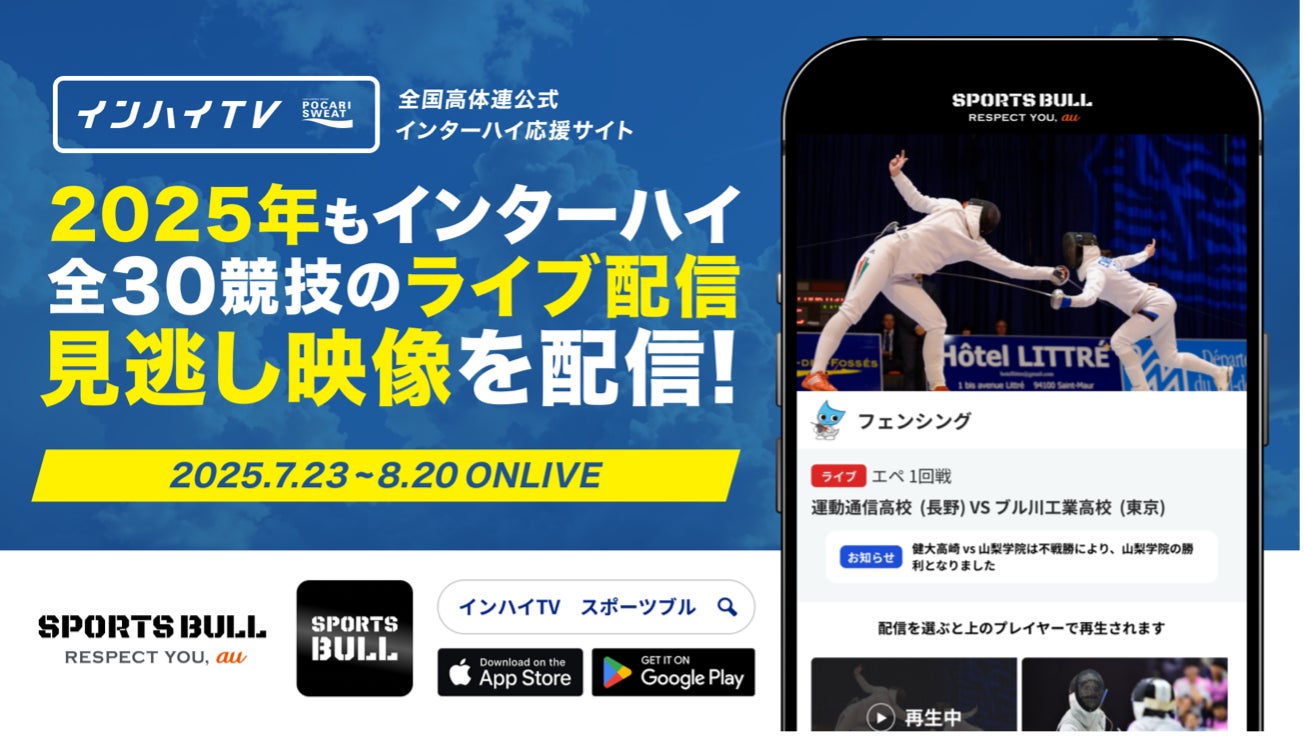 2025年も「SPORTS BULL(スポーツブル)」と「インハイ.tv」が連携し、インターハイ夏季大会の全競技ライブ中継を実施また、スポーツブルでインハイオリジナル動画を公開