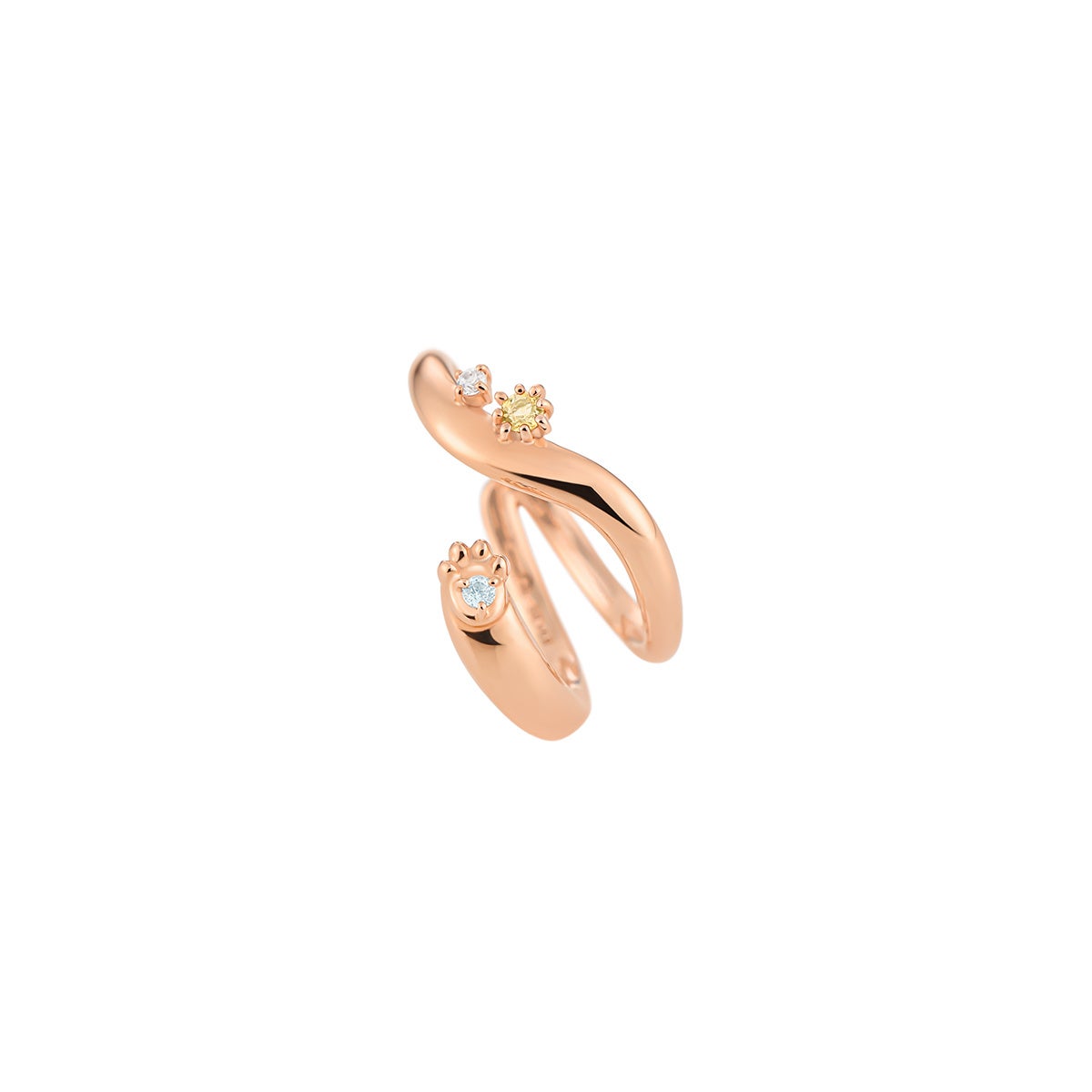 招き猫・小判・ダルマなど新年を連想させるモチーフをキュートにジュエリーに落とし込んだシリーズ。金運アップのパワーストーンとして縁起のよいシトリンやタイガーアイ、ルチルクォーツをあしらい、上品な輝きを放つ今だけのデザインに仕上げました。肉球をさりげなくあしらったリングカフは、肉球の部分に「良縁」、「コミュニケーション能力アップ」のパワーストーンとされるブルートパーズをセッティングし、新たなスタートに明るい幸運が訪れるよう願いを込めました。新年らしいモチーフを落とし込んだキャッチーな片耳ピアスには、それぞれ「金運アップ」や「ビジネス成功のパワー」があるとされるストーンをチョイス。新年の幕開けに身に着ける人の背中を押してくれるパワーあふれるジュエリーです。