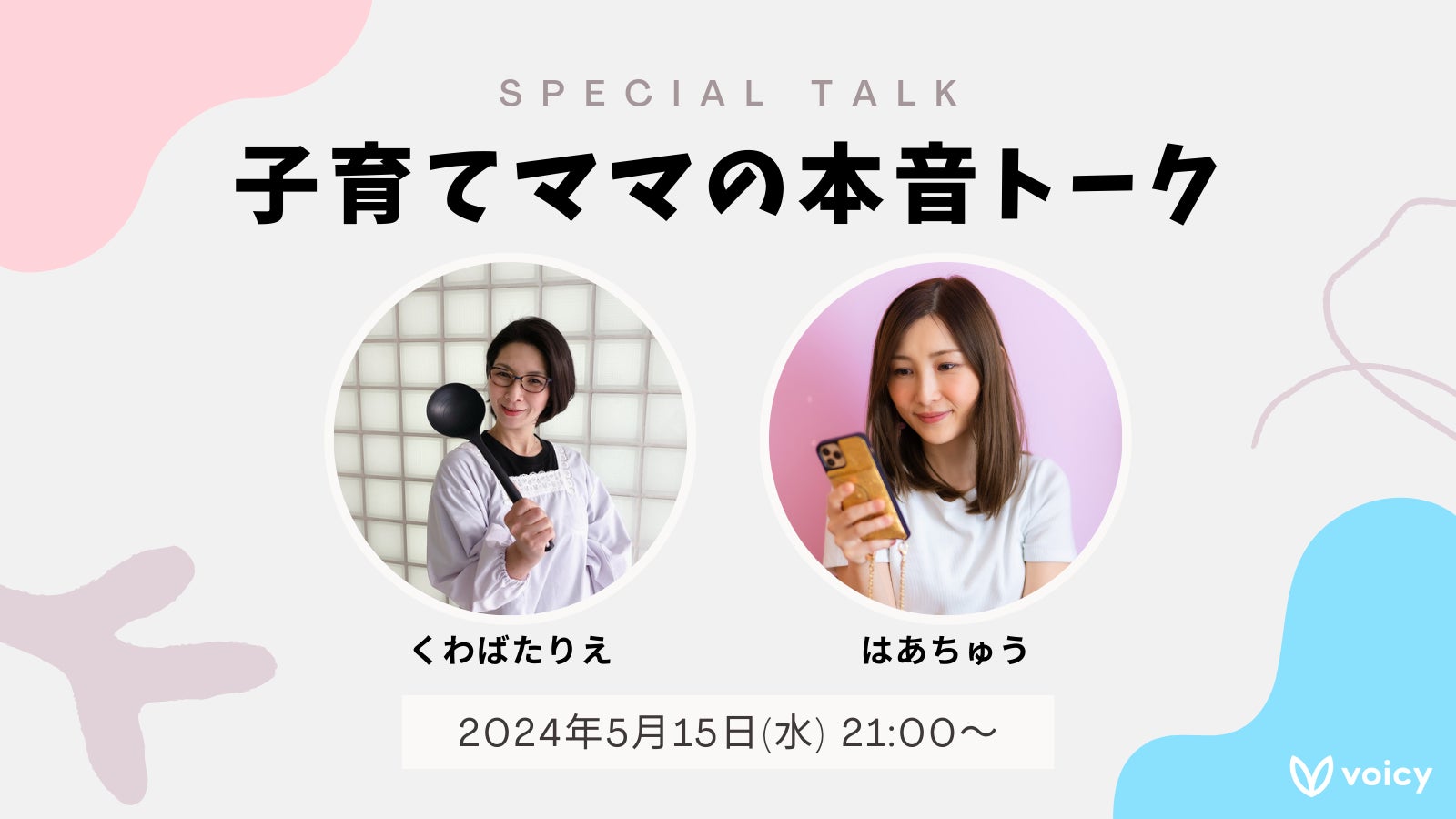株式会社Voicyが運営する音声プラットフォームVoicyは、お笑いコンビ クワバタオハラのくわばたりえさんと、ブロガー・作家のはあちゅうさんによる特別対談を、2024年5月15日(水) 21時よりプレミア公開します。テーマは「子育てママの本音トーク」。育児の近況やパートナーシップ、仕事・キャリアなどについて語ります。Voicyは新たな音声コンテンツの提供を通して、より音声を楽しむ機会をつくっていきます。