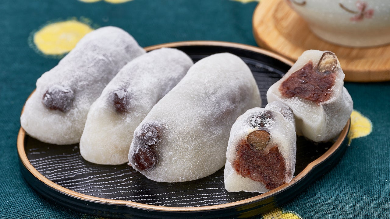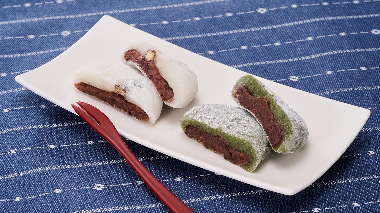 「鬼の金棒」に見立てた棒状の豆大福4個入です。