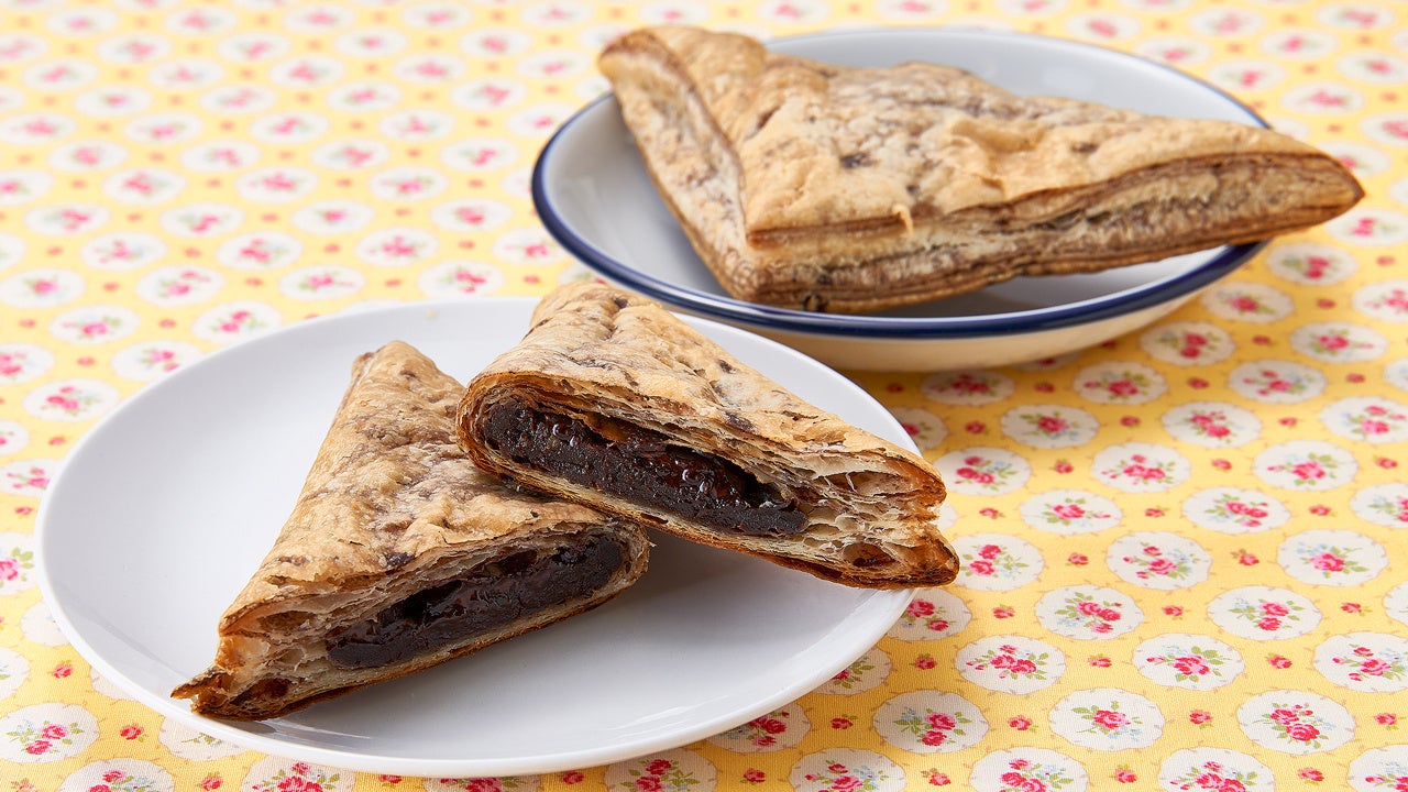 チョコ風味のパイに、クーベルチュールチョコとチョコクリームを包み焼き上げました。