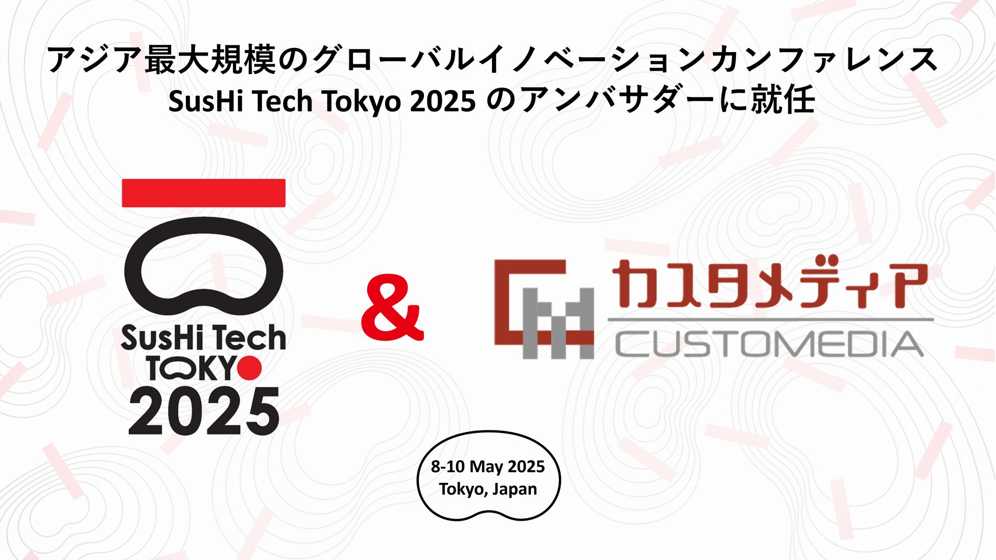新規事業のプラットフォームサービス構築を手がける株式会社カスタメディア(本店:大阪府大阪市、代表取締役:宮﨑 耕史、以下 当社)は、2025年5月8日(木)~10日(土)に東京にて開催される、グローバルイノベーションカンファレンス「SusHi Tech Tokyo 2025 (スシテックトウキョウ 2025)」のアンバサダーに就任いたしましたのでお知らせいたします。