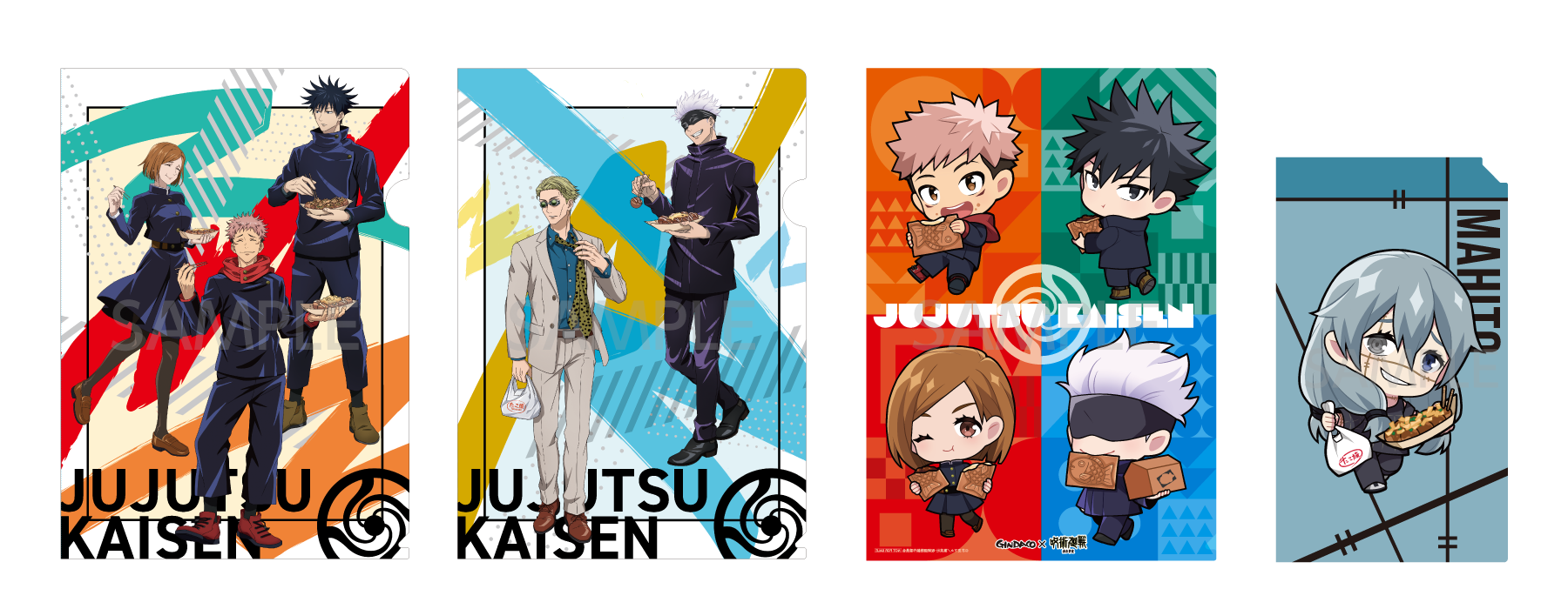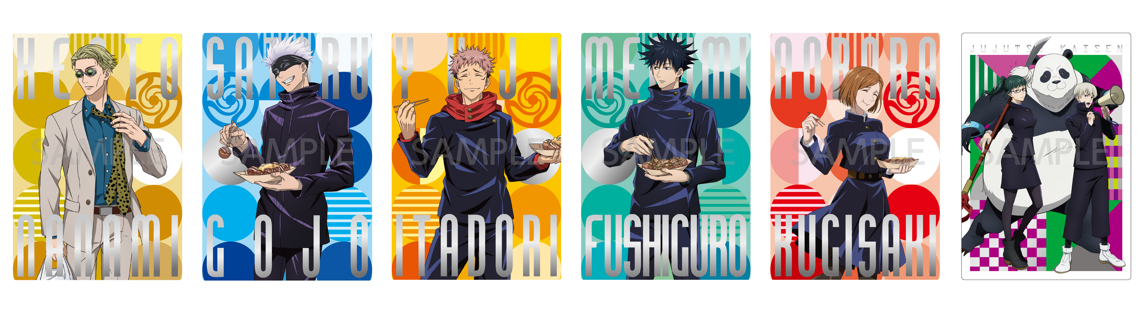 商品概要:渋谷事変の登場キャラクターでもある七海建人や伏黒恵をイメージした 「当コラボ限定のたこ焼」 を、オリジナルデザインの特製スリーブに入れ発売!当コラボたこ焼1舟ご購入で、限定コラボカードを1枚プレゼント!