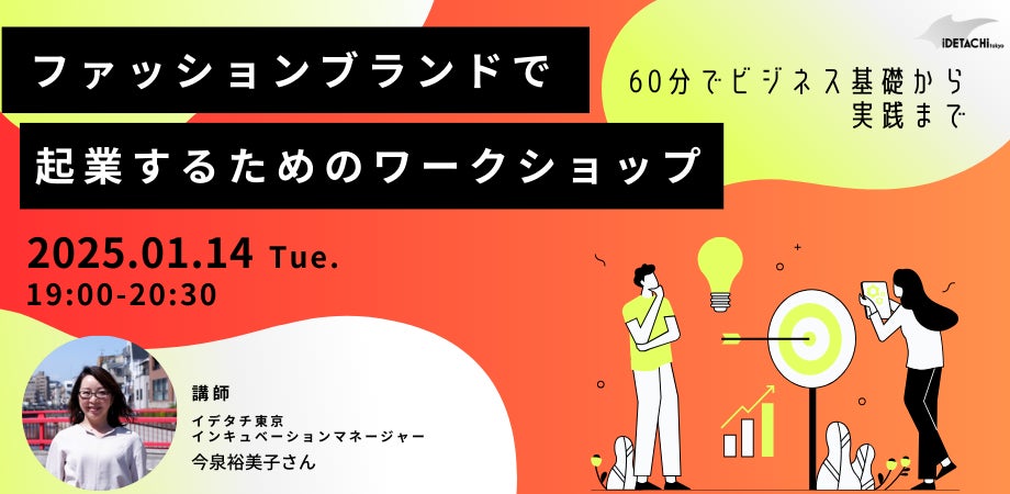 ファッションブランドの運営や、ファッション領域の事業で起業したい方・起業5年未満の方に向け、継続的に利益を生み出し事業を継続するための考え方の初歩を60分で学べるワークショップです。