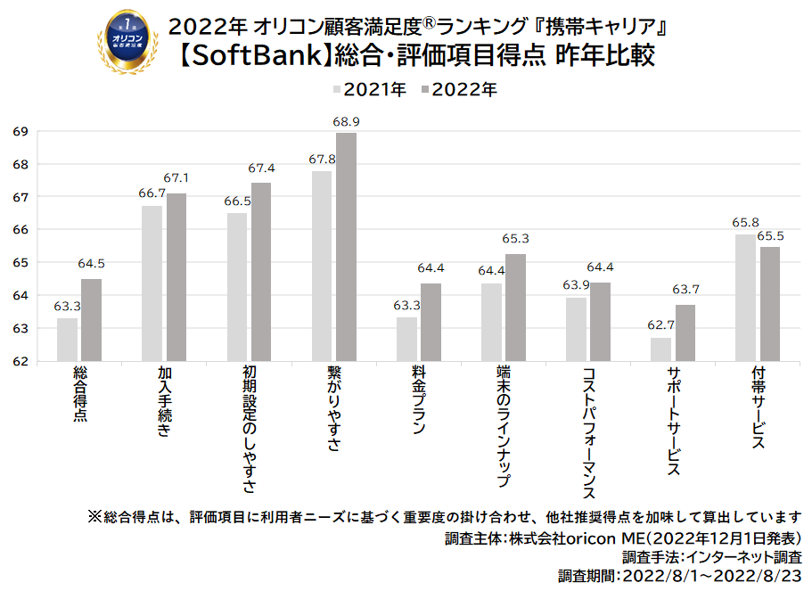 - 【SoftBank】が総合3位 昨年から得点の伸びは4社中最も高い