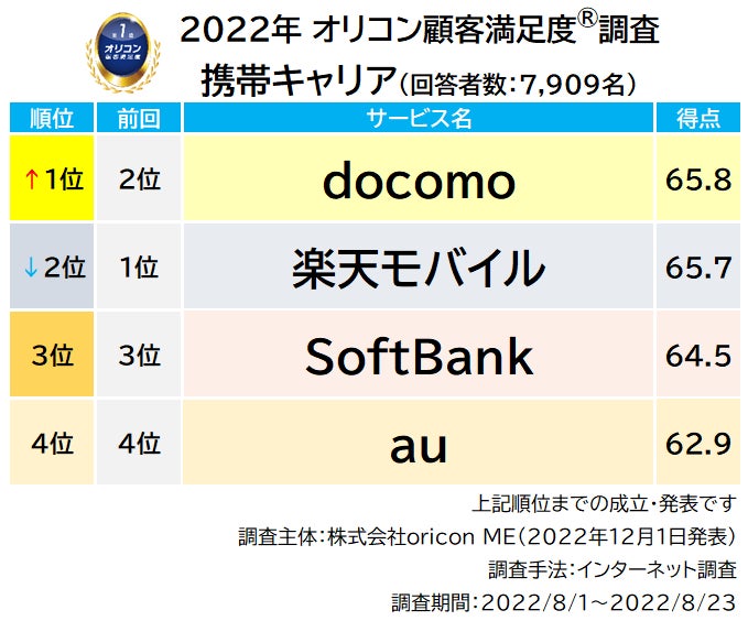 - 《調査概要》 2022年 オリコン顧客満足度®調査 携帯キャリア