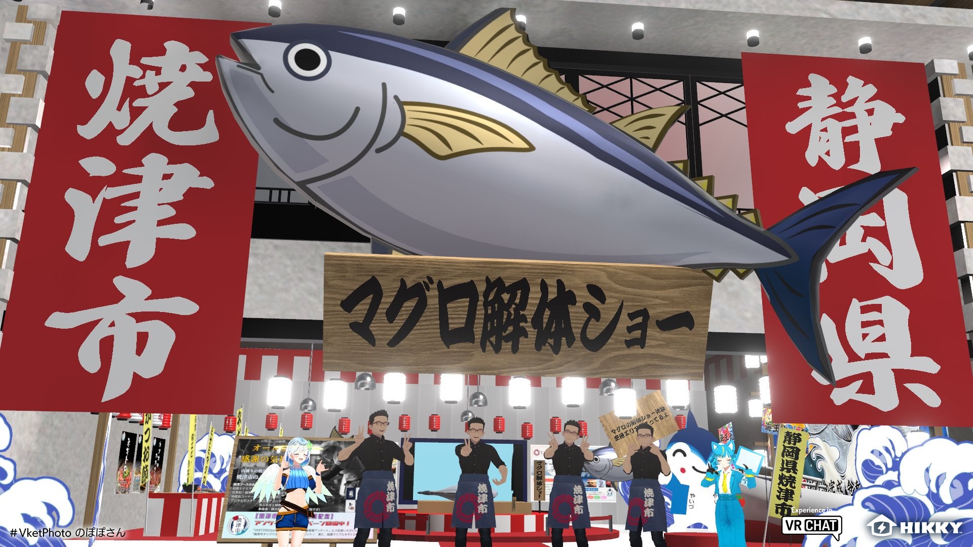 焼津市は、ふるさと納税返礼品として全国的な人気を誇る豊富な海産物をはじめとした地域の魅力の数々を、特に若い世代を中心に伝えていきたいという思いから、2022年夏にHIKKYが主催する「バーチャルマーケット(以下、Vket)」へ初めて出展いただきました。以降、Vketには4回連続の出展、さらに2023年夏にはVketのリアルイベントである「Vket Real」へも出展いただいています。