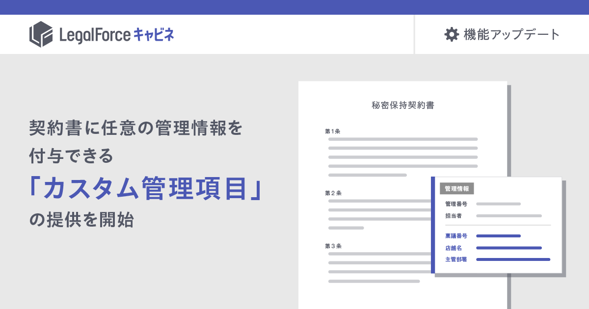 AI契約管理システム「LegalForceキャビネ」、契約書に任意の管理情報を付与できる「カスタム管理項目」の提供を開始