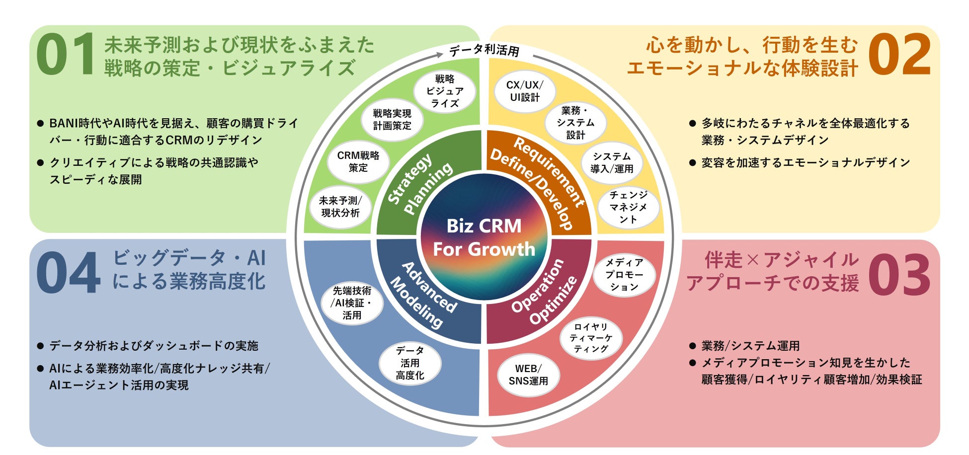 国内電通グループ4社、CRM起点で事業や組織の変革を支援する「Biz CRM For Growth」提供開始