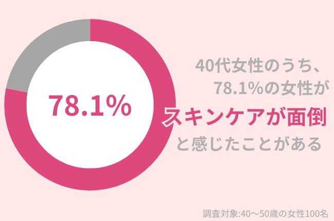 調査の結果、78.1%と多くの40代女性が「スキンケアが面倒」と感じた経験があるとわかりました。