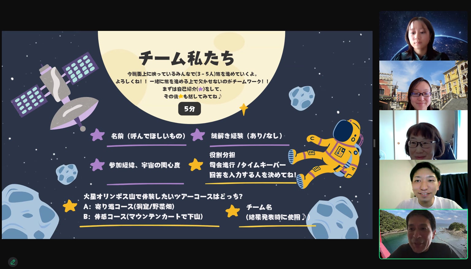 宇宙や火星に関する基礎知識からちょっと難しい問題まで、謎解きならではの遊びを交えた問題を参加者と一緒に楽しむことができました。