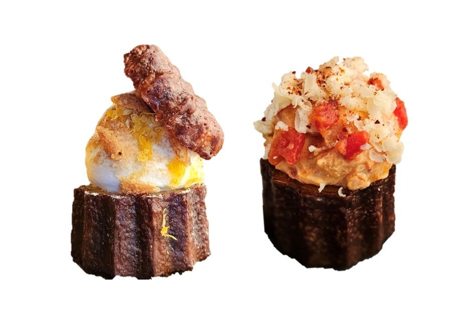 カヌレにクリームを掛け合わせた「クレムレ®」。レモンクリームとメレンゲを挟んだ甘いものから、パプリカとマスカルポーネのクリームにチーズを合わせた食事系まで幅広くラインアップ。