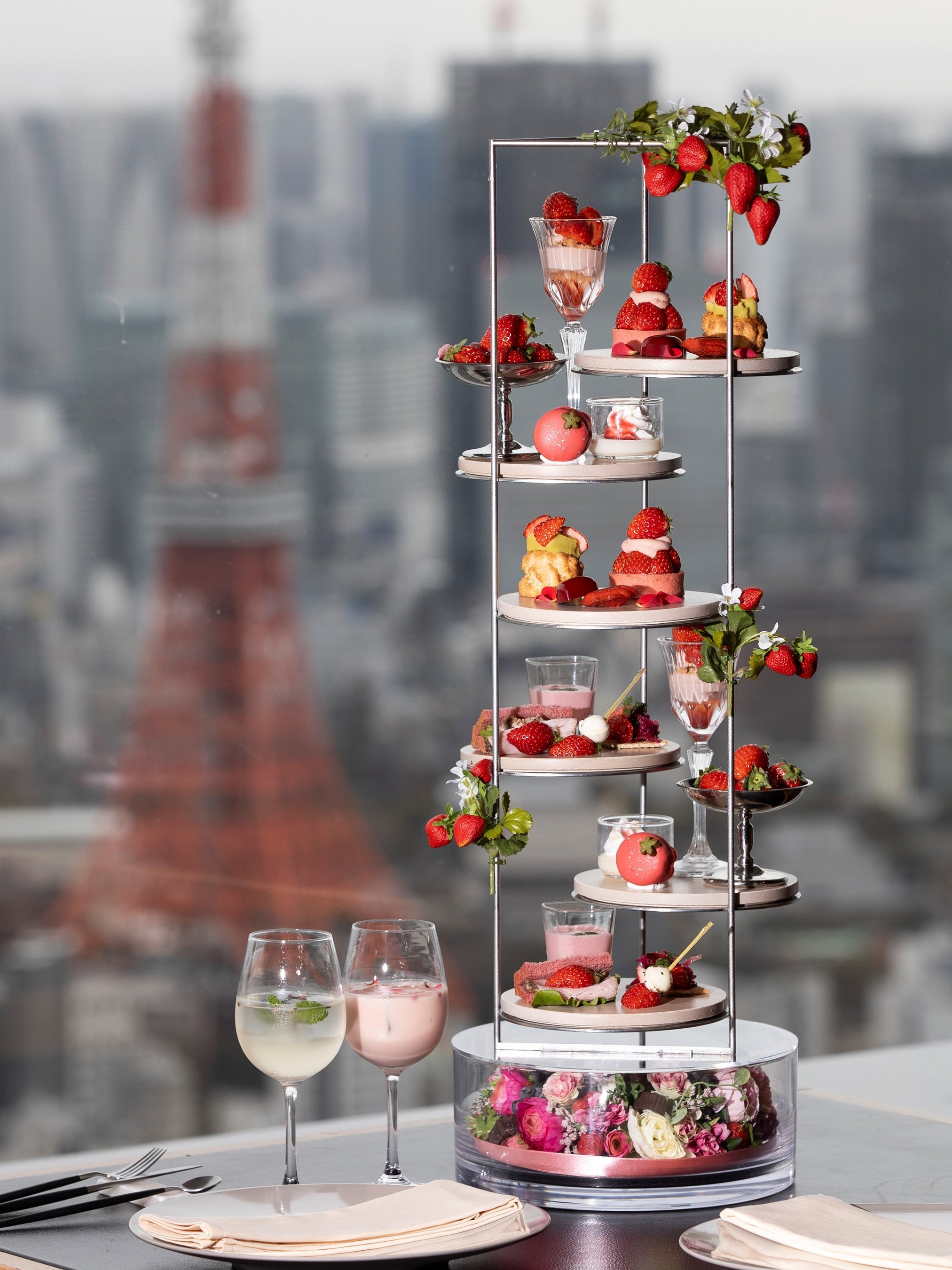 六本木ヒルズ森タワー52階にある「THE SUN & THE MOON (Restaurant)」では、甘酸っぱい苺とチョコレート、紅茶の繊細な風味が織りなす、上品な味わいを楽しめるアフタヌーンティー「Strawberry&Chocolate AfterMOON Tea」を、期間限定で提供しています。絶景と共にスウィートな時間をお過ごしください。