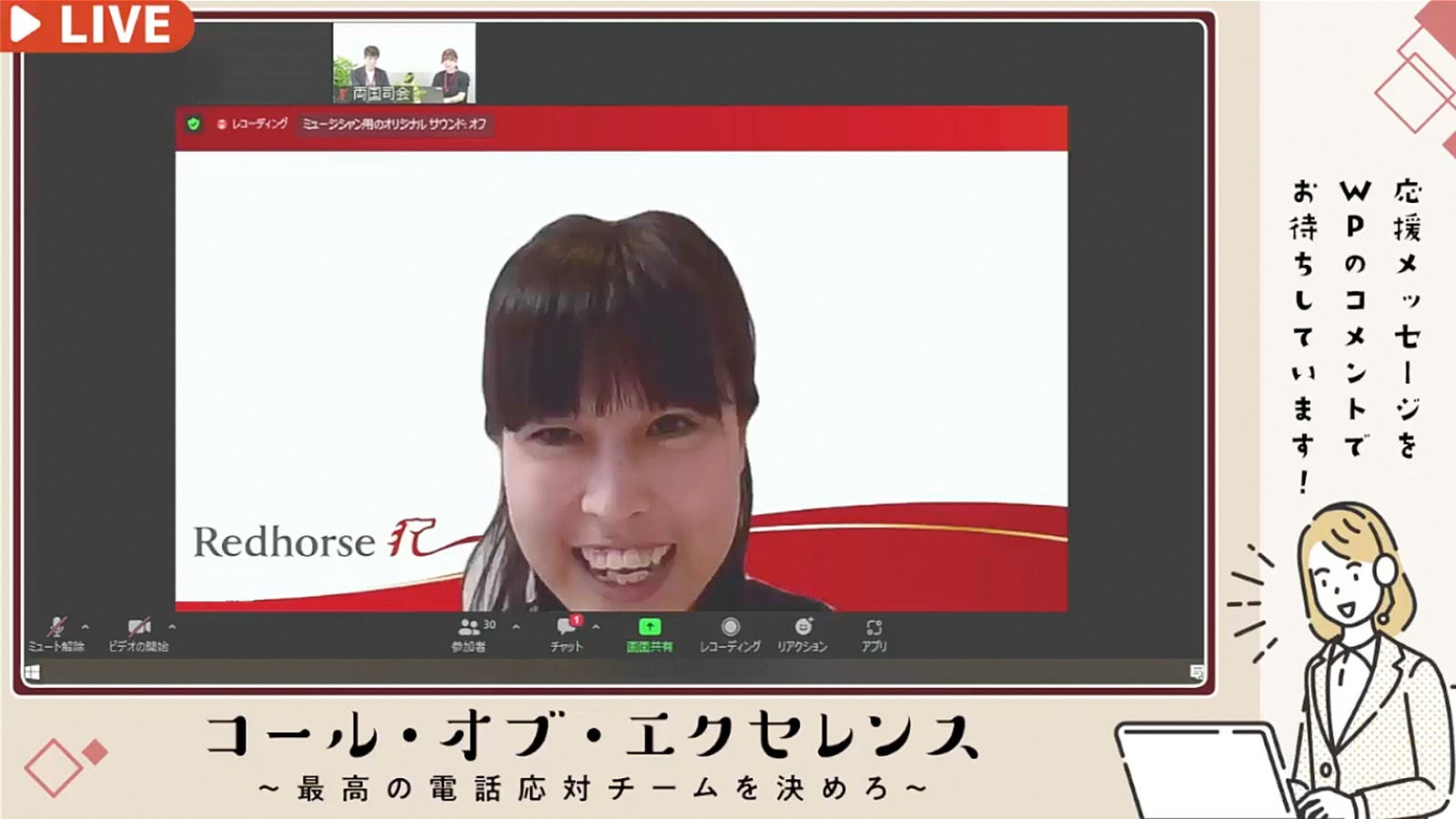 コンテストは当社の地域支援部門CS部(Customer Satisfaction部、以下CS部)所属のオペレーター業務担当社員27名が出場し、決勝戦の様子を社内SNSにてライブ配信しました。