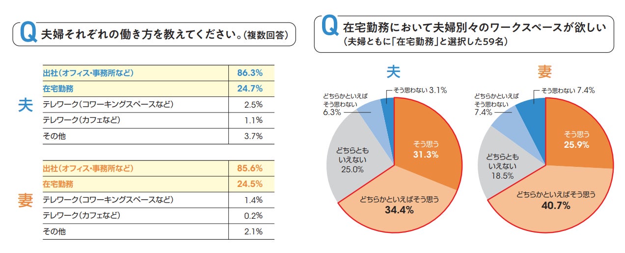 在宅勤務をする夫婦の6割以上が「夫婦別々のワークスペースが欲しい」と回答