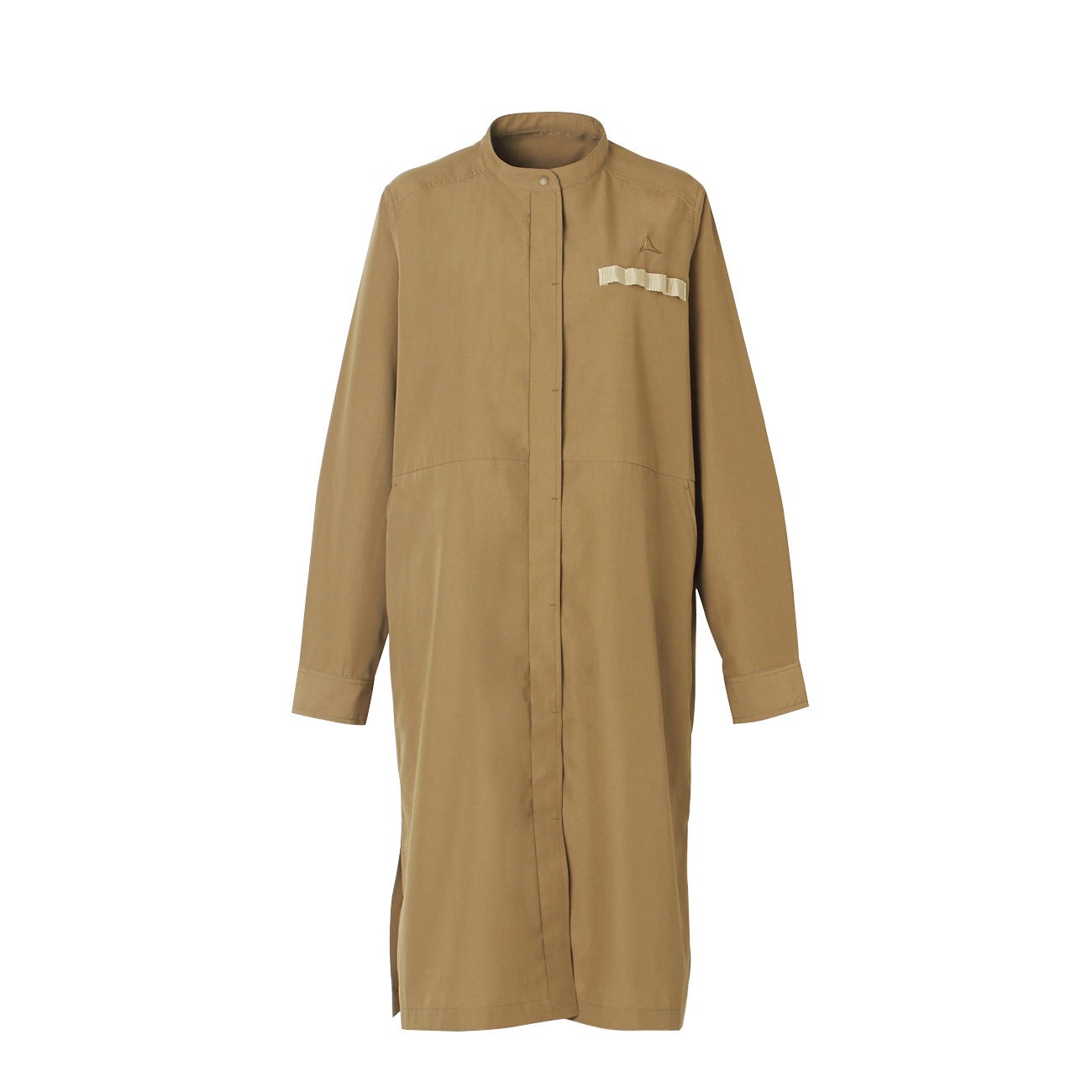 ハードな使用にも耐えうる高強度素材「ダイナモナス」を使用したシャツワンピース。引き裂き強度や耐摩耗性だけでなく火の粉にも強い耐熱素材ながらも、柔らかくナチュラルな風合いはアウトドアだけでなく街なかでもシーンを選ばず着回せます。ゆったりとしたシルエットでキャンプなどリラックスタイムにもピッタリです。腰のポケットは身の回りのものをさっと入れられるよう大きめの作りとなっています。左胸にはウェービングテープがつきアウトドアテイストのアクセントにもなっています。